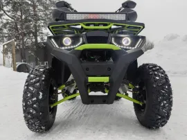 • Защита и функциональность: Передняя часть защищена мощным бампером от механических повреждений. Наличие переднего и заднего багажников расширяет возможности перевозки грузов (максимальная нагрузка 95 кг).