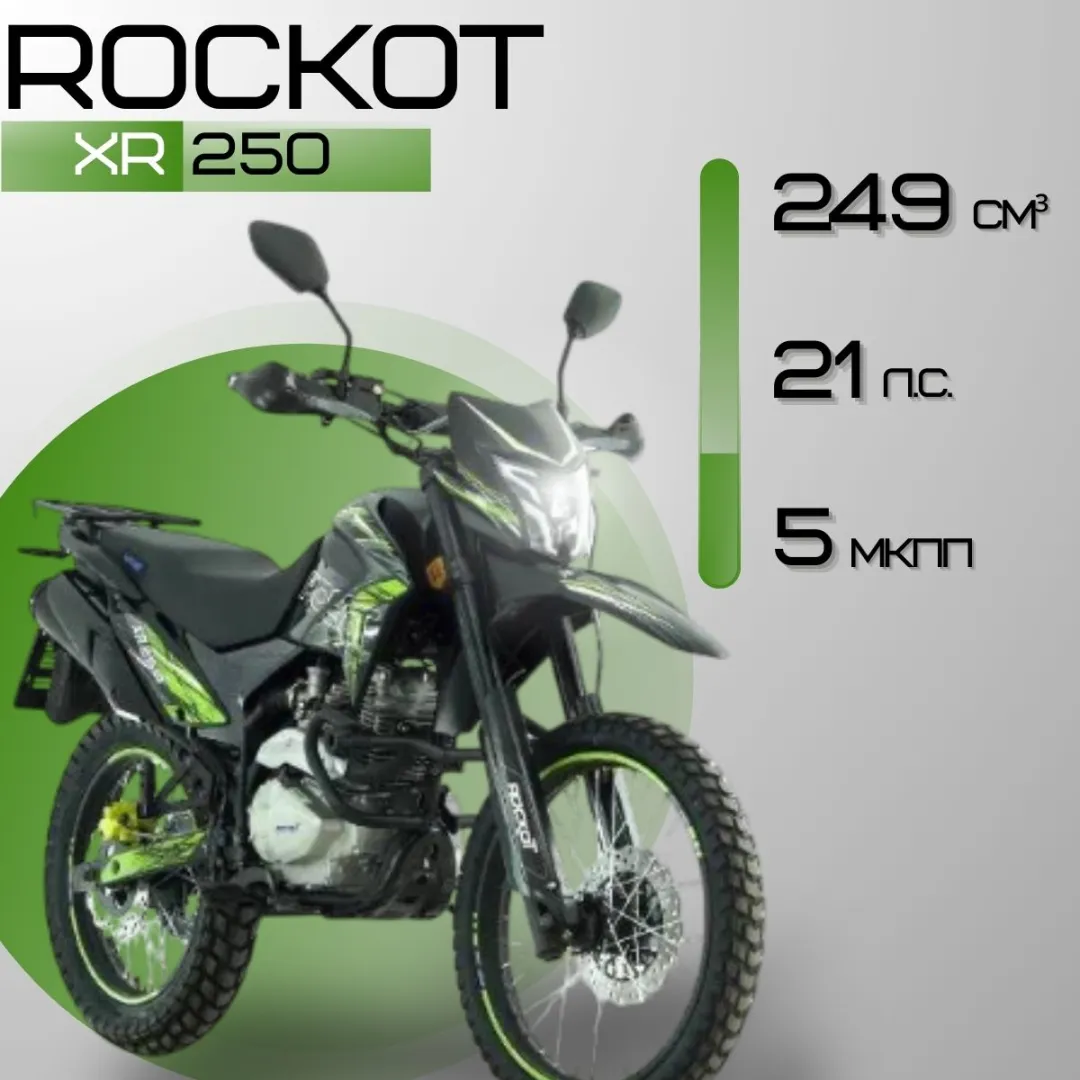 Полноразмерный мотоцикл эндуро ROCKOT XR250 (21/18, ЭПТС) в классе софт-эндуро. Мотоцикл имеет электронный ПТС и способен проехать везде, где пожелает его райдер. Колесная база 1380 мм и высота по седлу 850 мм обеспечивают потрясающую управляемость как на городских улицах, так и на бездорожье.