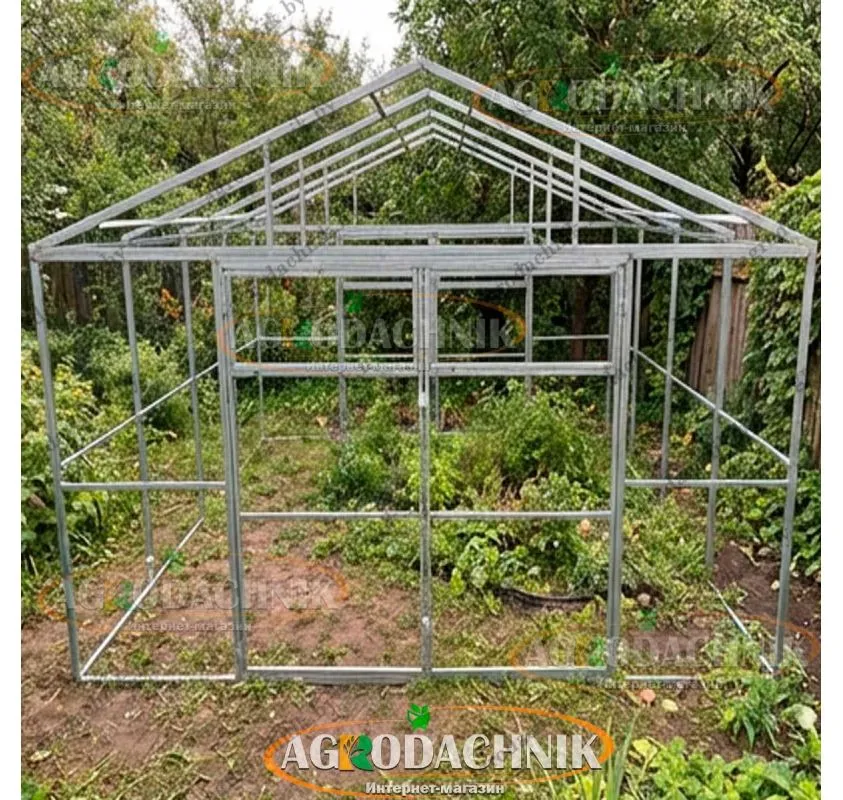 Теплица (Каркас) СПР Фермер-4 4х10м: Максимальный объем для агробизнеса - Когда речь идет о профессиональном выращивании овощей, объем имеет значение. Теплица "Фермер-4" размером 4х10 метров — это уникальная конструкция, которая не имеет аналогов по полезной кубатуре. Сочетание огромной ширины (4 метра) и прямых стен высотой 2 метра создает внутри настоящий производственный цех площадью 40 кв.м. Высота в коньке достигает рекордных 2.67 метра, что позволяет выращивать самые высокие индетерминантные сорта томатов или устанавливать многоярусные стеллажи для рассады. Вы можете приобрести только мощный металлический каркас или сразу заказать полный комплект с поликарбонатом. Прямостенная конструкция с усилением Чтобы перекрыть пролет в 4 метра и обеспечить вертикальность стен, используется комбинированный каркас. Несущие стойки по периметру выполнены из усиленной оцинкованной трубы 40х20 мм, что придает стенам высокую устойчивость. Стропильная система двускатной крыши и горизонтальные перемычки изготовлены из профиля 20х20 мм. Форма "домиком" обеспечивает отличный сход снега и позволяет максимально эффективно использовать внутреннее пространство, не теряя высоту у краев. Металл защищен от коррозии горячим цинкованием. Болтовая сборка модулей Для соединения элементов каркаса используется надежная болтовая система. Это гарантирует геометрическую точность сборки и жесткость всей конструкции. Вы можете выбрать шаг установки ферм: 1 метр или усиленный 0.67 метра. Особенность серии "Фермер" - модульность. Вы всегда можете удлинить теплицу вставками по 2 метра. Для фиксации на грунте в комплект входят мощные Т-образные якоря. Ворота и вентиляция Обработка 40 квадратных метров требует механизации. Поэтому каркас комплектуется широкими распашными воротами (двойные двери) с обоих торцов. Вы можете свободно заезжать внутрь на мотоблоке или мини-тракторе. Для проветривания под самым коньком (на высоте более 2.5 м) предусмотрены форточки, которые эффективно удаляют горячий воздух из огромного внутреннего объема. Комплектация на выбор Мы предлагаем гибкость: закажите только уникальный широкий каркас или сразу добавьте в корзину комплект сотового поликарбоната. Для такой масштабной и высокой конструкции мы рекомендуем выбирать листы толщиной не менее 4 мм (оптимально 6 мм) с UV-защитой. Это обеспечит необходимую теплоизоляцию и жесткость стен. Руководство по сборке Нажмите на изображение, чтобы скачать инструкцию (PDF): Профессиональный выбор Теплица "Фермер-4" 4х10м - это лучшее решение для тех, кто хочет получить максимум урожая с квадратного метра. Прямые стены, огромная ширина и высота делают ее идеальным инструментом для коммерческого выращивания.