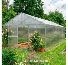 Теплица (Каркас) СПР Агроном 5.5х6м: Простор на шести метрах - Иногда участок позволяет поставить широкую конструкцию, но ограничивает в длине. Теплица "Агроном" 6х5.5 метров - это уникальное предложение. При стандартной длине в 6 метров она обладает фермерской шириной, предоставляя 33 кв.м. площади. Это позволяет организовать до 5 параллельных грядок! Высота 3 метра и прямые стены превращают этот парник в настоящую оранжерею. Вы можете приобрести только мощный каркас с воротами или сразу укомплектовать его поликарбонатом. Усиленный скелет 40х20 мм Перекрыть пролет в 5.5 метра - сложная инженерная задача. Каркас этой модели целиком выполнен из оцинкованной профильной трубы 40х20 мм. Это касается как вертикальных стоек, так и ферм крыши. Такая мощь необходима для сопротивления ветровым и снеговым нагрузкам на широкой крыше. Металл оцинкован горячим способом, что исключает коррозию даже в самых влажных условиях. Сборка на крабах Элементы соединяются в одной плоскости с помощью Х-образных пластин ("крабов"). Это создает идеально ровную поверхность для укладки поликарбоната и распределяет нагрузку. Для фиксации на грунте в комплект входят 8 мощных Т-образных якорей. Этого достаточно, чтобы удержать широкую 6-метровую конструкцию при сильном ветре. Ворота и высокий конек Даже в 6-метровой версии сохранены все преимущества серии: распашные ворота с обоих торцов для заезда мотоблока и форточки под самым коньком. Высота 3 метра обеспечивает огромный объем воздуха, что сглаживает температурные колебания. Вентиляция работает эффективно, удаляя перегретый воздух из верхней зоны. Выбор комплектации Заказывайте только уникальный широкий каркас или полный комплект с сотовым поликарбонатом (3, 4, 6 мм). Для высокой фермерской теплицы мы рекомендуем листы толщиной от 4 мм с защитой от ультрафиолета. Это обеспечит жесткость стен и сохранение тепла ранней весной. Инструкция по сборке Нажмите на изображение, чтобы скачать руководство (PDF): Фермерский размах Теплица "Агроном" 5.5х6м - это уникальное сочетание компактной длины и огромной ширины. Идеально для тех, кто хочет получить максимум полезной площади и удобство работы с техникой.